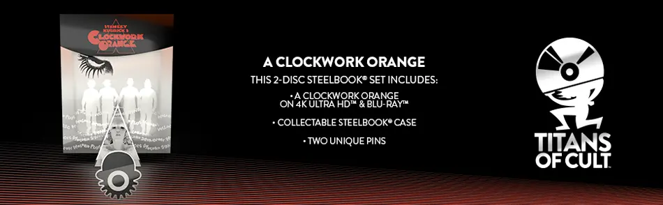 Stanley Kubricks Kultklassiker Uhrwerk Orange (A Clockwork Orange) erscheint in drei 4K-Editionen. Neben dem Uhrwerk Orange 4K Steelbook bringt Warner Home Video eine Ultra HD Giftbox auf den Markt. Zeitlich versetzt gibt es ein UHD Keep Case mit zwei Discs. Zusätzlich wird die Titans of Cult Reihe um eine Edition erweitert. Das Titans of Cult Steelbook zu Uhrwerk Orange beinhaltet zwei exklusive Pins, dessen Design an die Motive des Klassikers angelehnt ist. Im Lieferumfang befinden sich zwei Discs.
